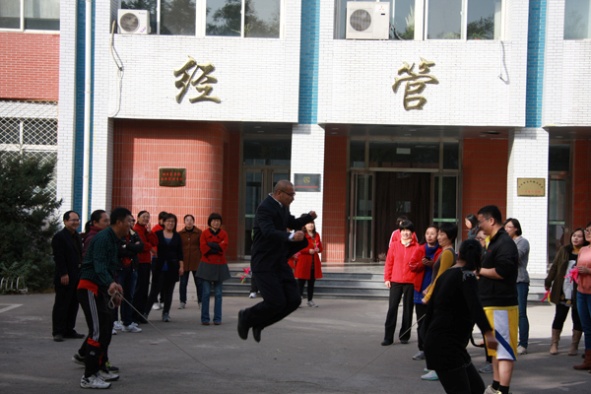 为加强经管学院教职工之家建设,促进党政工共建一个家,提高教职工经管学院分工会于2013年11月15日中午在经管楼前组织了经管学院第九届教职工跳绳踢毽比赛。经管学院大部分老师参加了此次活动。