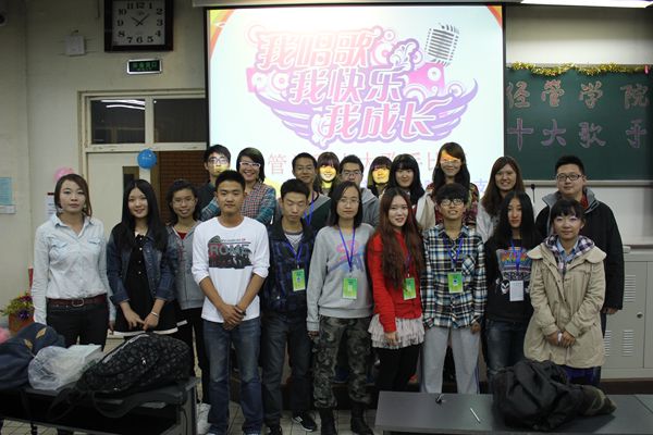 为了丰富同学的校园生活,彰显大学生青春的活力,威廉希尔中文近日在教B103举办了以“我歌唱、我快乐、我成长”为主题的经管十大歌手选拔活动。这场令人期待的赛事,由威廉希尔中文团总支学生会文艺部主办,经管学生会主席张乐乙,学生会副主席鱼湫培、刑星,新闻信息中心主任郭帅,11级十大歌手冠军杜羽祥,12级十大歌手吴佳蕾,文艺部部长陈婧钰、副部长孔阿飞、刘海阳作为本次比赛的评委对52名参赛选手进行选拔;科协主席王大欣、青协主席张璇作为到场嘉宾参与本次活动。