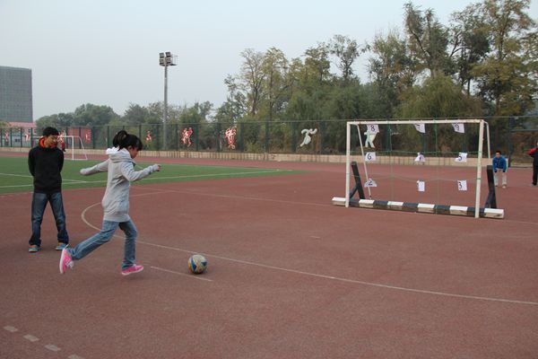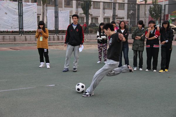 青春是宣泄不完的热情,青春是挥霍不尽的美丽。天气转凉,校园里银杏叶黄了,一股浓浓的秋意袭来,但是有这样一群人在操场上用他们的行动在彰显着青春的活力——2013年10月30日下午3:00,由经管学院承办的首届北京农学院校园趣味足球比赛在校田径场拉开帷幕。