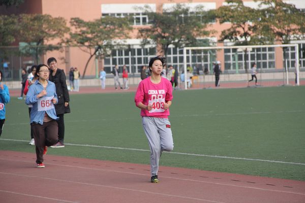 经管运动员403号张丽鑫一马当先,始终保持着第一的位置,带领着所有参赛的运动员想着终点前进。在接下来的一圈中她与选手们进行激烈竞争,在最后关头向着终点冲刺而去。近了、近了,终于张丽鑫不负厚望,在全体观众的呐喊声中第一个冲过了终点线。整个比赛过程,观众席上的加油声此起彼伏,经管学院的选手们更是一路拼搏,奋勇向前,为经管赢得荣誉。