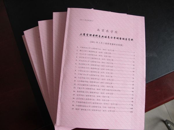 总之,通过为期一个月的培养方案调研,工商管理教研室基本掌握了全国各类院校工商管理本科专业培养方案的编订情况,并编写完成了《北京农学院工商管理专业培养方案调整调查资料》。