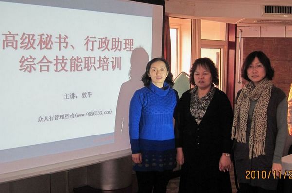 为了进一步提升职业技能,2010年11月26日至28日,经管学院办公室主任王艳霞、行政秘书刘静琳、教学秘书王兆洋3位老师参加了“行政助理综合技能实战培训及职业强化训练”课程。