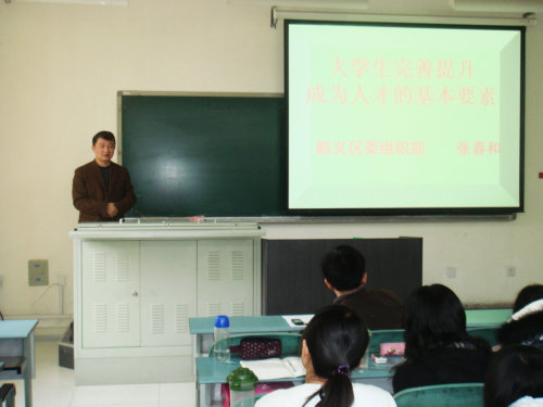 2010年4月12日上午10点,经管学院校友、农经专业8941班毕业生张春和来校为我院在校生举办了题为“大学生完善提升成为人才的基本要素”的经管论坛。参加论坛的有副院长刘柳、8941班班主任李佰杰、部分入党积极分子、顺义区06级毕业生。报告分为明确人生方向、树立坚定意志、掌握科学方法和相信自我四个部分,张春和结合本人工作经历和人生阅历,用生动的语言和实际的案例,为在校大学生的成长成才解惑答疑。