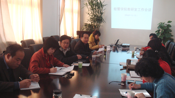 2010年1月5日上午经管学院在3号办公楼3017召开了教研室工作会。会议由何忠伟院长主持,经管学院领导、教研室主任、教研室秘书及实验室主任参加了会议。