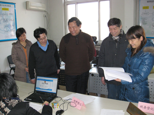 2010年1月15日上午,副校长杜晓林教授在经管学院院长何忠伟、总支书记李华的陪同下现场观摩了经管学院“现代服务业综合实训”。杜晓林副校长认真地查看核心企业及工商局、税务局、商业银行、会计事务所、第三方物流、招投标中心、国际货代等外围服务企业等业务训练流程,仔细地听取了各岗位小组负责人的业务汇报和同学们的收获和体会,并就“现代服务业综合实训”教学团队教师组成、实践内容、实践组织、实践对象进行了细致询问。杜晓林副校长对经管学院创新实践教学模式,引导学生开展跨专业、跨领域的综合实训活动,建立知识传授、能力培养、素质教育三位一体的校内综合实训模式给予了充分肯定。杜晓林副校长认为,该模式能够有效地调动了同学们的积极性,达到良好的实训效果。他希望经管学院克服现有场地的约束,进一步完善实训细节,提高综合实训效果,逐步增强示范效应,不断扩大社会影响力。