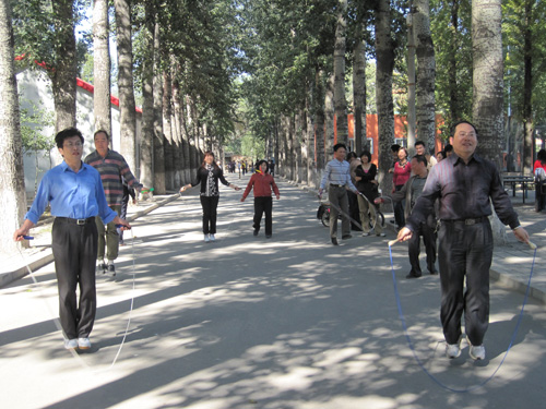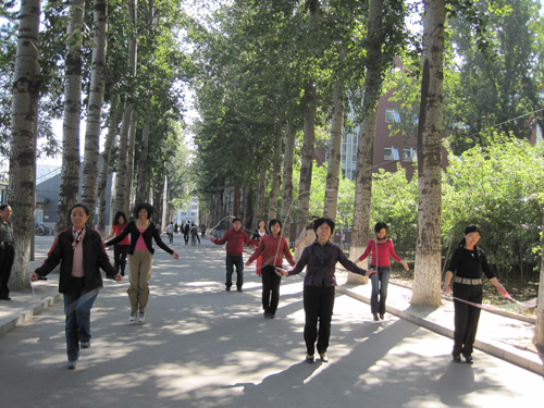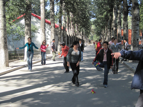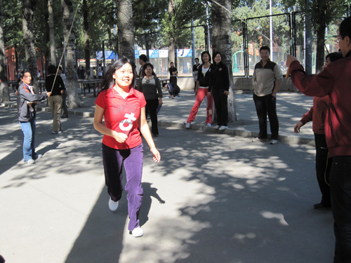 2009年10月14日中午12:00在操场西侧的大杨树下,经管学院分工会举办了第五届跳绳、踢毽比赛,学院所有领导及三分之二以上的老师参与了此次活动。