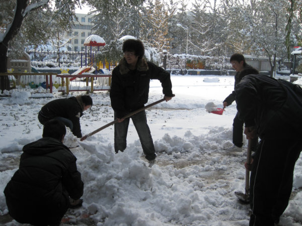 据悉,下午经管学院学生党支部还将组织大家清扫幼儿园剩余的积雪。