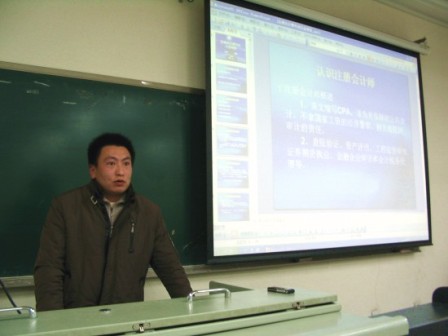 2009年12月3日晚,由经管学院学生会外联部主办,请来了北京财科学校副校长周鹏,为我校想要报考注册会计师的同学进行了一次公益讲座。