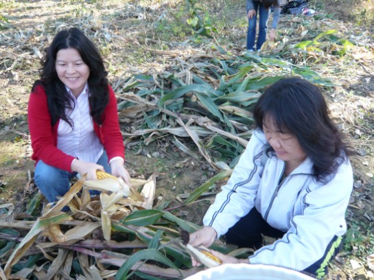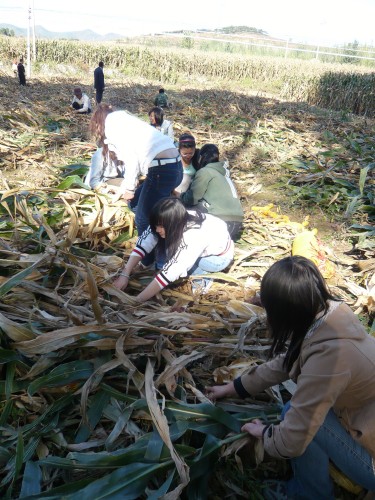 随后,党员们一同来到村里的玉米地。为了体会农民劳动的辛苦及为人民服务的真谛,发扬党员工作积极性,支部党员们在北穆村党员的指导下,一同进行掰玉米以及装袋的工作。对于平日在学校教书育人以及主攻学业的老师及同学来说,下地干活无疑是个既新鲜又辛苦的工作,但是在村党员的带领下,经管党员干劲十足,团结合作,很快就完成了工作,此次工作不但是师生交流互动的平台,同时也是党员实践学习的机会,更增强了师生党员间的凝集力。