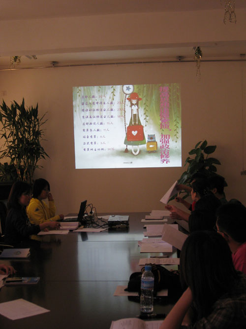 2009年10月15日中午12:30,北京农学院经管学院优秀班集体答辩大会在3号办公楼3层会议室举行。辅导员王兆洋老师,邬津老师,团总支书记王月老师,班主任武广平老师参加答辩大会担任评委。