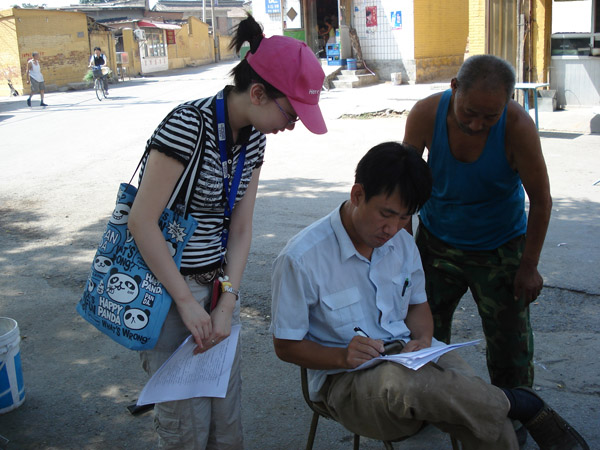 2009年8月23日上午,北京农学院经管学院206413班农经特色小组一行5人来到昌平区朝凤庵村开展了关于农村人口文化程度和就业关系的一系列调查访问活动。烈日炎炎的处暑时节,组员丁吟、红乐、郑岩、苑雪、刘丽丽手拿问卷和自己准备的小礼物,带上热情的微笑走到村民面前。经过一个上午耐心询问,小组共获取数十位男女老少村民的相关真实信息,并通过个别访问,成功获得预期的调查效果,同时还收到了村民们的好评。在调查中,小组来拜访了村大队,同时了解到很多朝凤庵村的信息。朝凤社区位于昌平城区东北侧,十三陵水库路西侧,毗邻著名的十三陵水库风景区。区域面积3.5平方公里,现有耕地216亩,人口1218人,其中男性590人,女性628人。
