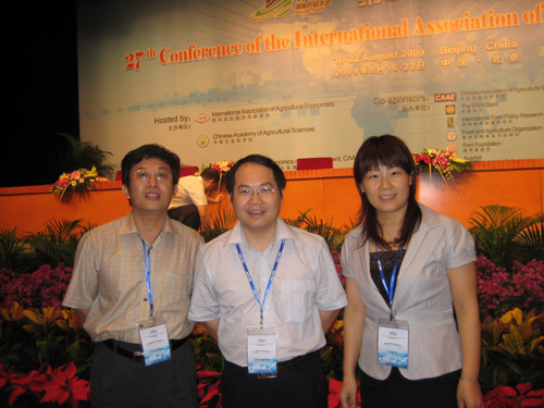 由中国农业经济学会主办、中国农业科学院农业经济与发展研究所承办的第二十七届国际农经大会于2009年8月16日至22日在北京国际会议中心召开。北京农学院经济与管理学院何忠伟院长、李华书记、刘芳副院长应邀出席本次大会,本院研究生郭军平(08级)、任钰(08级)、苏卫良(09级)、王琛(09级)列席旁听了本次大会。