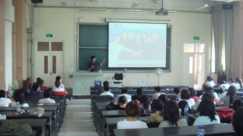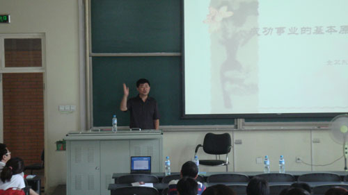 2009年6月23日下午,禾丰牧业有限公司董事长金卫东应邀做客经管论坛。演讲前,金卫东先生欣然接受了我院客座教授的聘书。演讲一开始,金卫东老师便以他的这些丰富多彩的人生经历作为开场,让我们了解他的专业背景和他的创业背景。1995年之前,金老师稳坐外企公司高级管理人的位置,拿着在那个时代和现在看来都不菲的工资,可是他无法忍受外国企业中对待中国人的不平等态度,受不了饮水机上贴上“中国员工不得引用,请自重”的歧视,不满足于现状的他在进取心的强大推动力下,不顾旁人不解的目光,既然绝然离开了那个让许多人羡慕的金饭碗,决定开始自己创业。