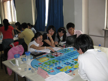 企业沙盘模拟自2004年被引入我校以来,在课程设置、教学研究、学生第二课堂活动方面得到了长足的发展。2008年,我校举办第一届比赛,并参加北京市的地区比赛,取得了较好的成绩。本次比赛经过组队报名、赛前培训,最终来自经管、植科、动科、食品等专业的54名同学参加了比赛。经过六天激烈的对抗,赛出一等奖一队,二等奖两队,纪念奖三队。一等奖获得者将代表我校参加北京地区半决赛。