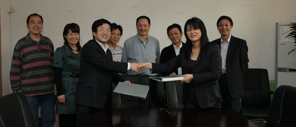 为了学习实践科学发展观,积极开拓经济学校外教学实习基地,2009年4月22日下午,经管学院党总支书记李华与广发期货北京营业部高建平总经理在办公楼三号楼会议室举行了双方共建校外教学实践基地的签约仪式,双方将在学生实习、师资培训、金融信息共享等方面展开合作。北京农学院教务处副处长沈文华教授;广发期货北京营业部副总经理吴培琪、副总经理周彦;经管学院领导班子成员及部分教师出席了签约仪式。