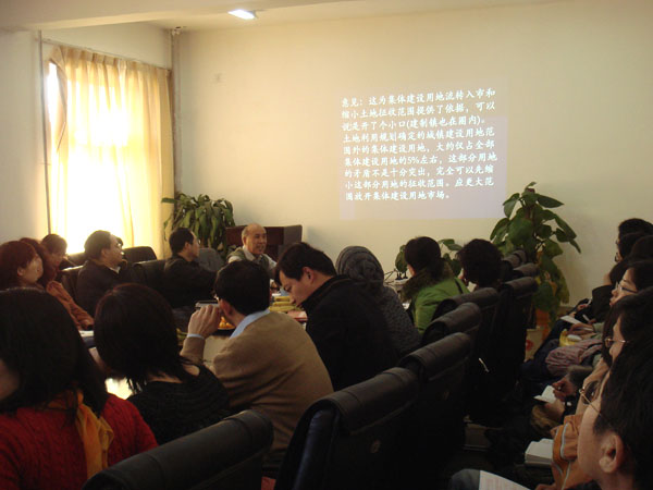 第一、农村土地制度。张晓山研究员认为,现在的土地制度主要存在以下问题,一是土地资本化后增值收益的分配问题,二是工业化、城镇化进程和基本农田保护区之间的矛盾,三是健全土地承包经营权流转市场、发展适度规模经营问题,四是宅基地问题,五是改革与法制到底是一个什么样的关系问题。