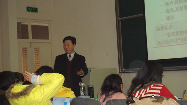 2008年12月3日下午,经管系邀请北京市教学名师,北方工业大学刘永祥教授为2007级学生讲授《会计学原理》课程的“财务会计报告”。