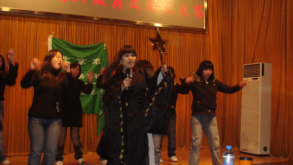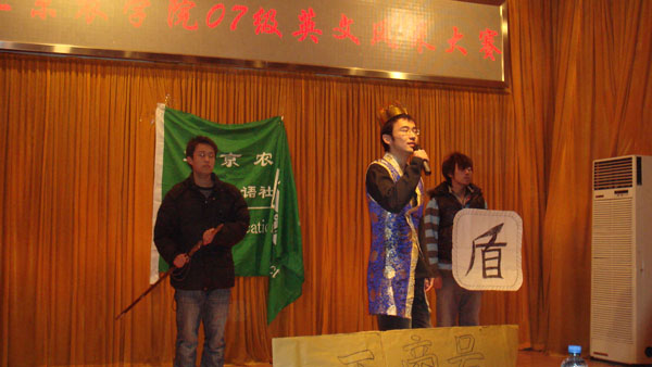 北京农学院英语社于2008年12月5号下午2点举办了“英文风采大赛”话剧类比赛。2007级工商管理专业表演的英语音乐剧“海的女儿”感动了在场的每一位观众,赢得了评委老师的好评及观众的热烈掌声,以第一名的好成绩进入决赛。为了此次活动,总计有28名同学参与表演,同学们于两周前就开始准备,在紧张的学习之余,牺牲休息时间努力排练、借服装、做道具。通过这次活动同学们不仅锻炼了英语口语,同时增强了班集体的凝聚力。