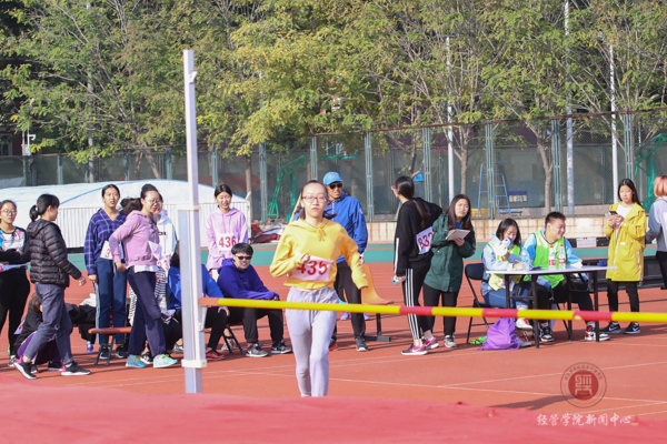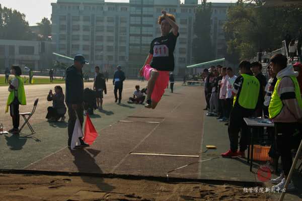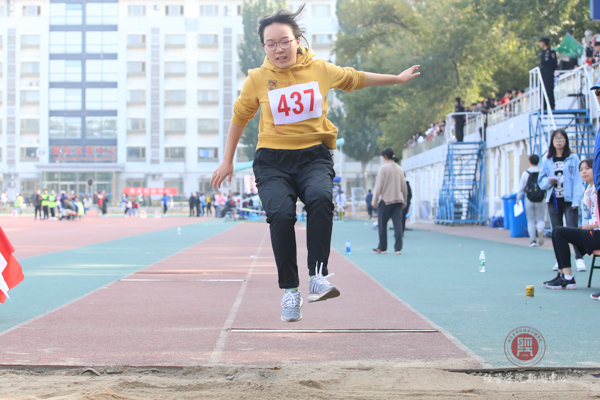 女子跳远项目的比赛,经管437号选手郭艺彤凭借着三米六二的成绩取得了决赛第三的优异名次,为经管学院争得了荣誉。当裁判的旗子落下,郭艺彤同学似离了弦的弓箭一般助跑,落地的瞬间引起连连惊叹,无论是助跑,起跳,还是腾空,落地犹如流水线一般准确无误,一条美丽而优美的弧线落入沙子柔软的怀抱。即使对手的挑战不断来袭,但她不惧挑战,最终在决赛中成功获得了第三名的好成绩。