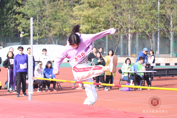 紧张、刺激的女子跳高比赛开始了,。只见吴一良快速助跑之后直腿摆动腾跃到空中,两臂向上摆起,全身向上挺,朝着横杆中央起跳。这一连串的动作优美绝伦,观众爆发一阵雷鸣般的掌声。最终,吴一良凭借着自己的身高优势以及跳高技巧一路过五关斩六将,成功斩获第三名的好成绩!同时,我院夏非凡同学最终得到第九名的好成绩。