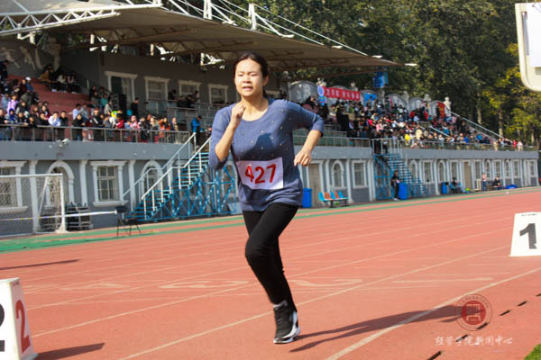 经管学院的巾帼英雄们也不遑多让,最终女子4x100米也取得了第五名的成绩为经管学院增光添彩。