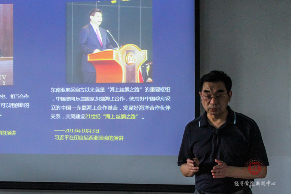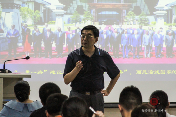 为深入学习贯彻习近平新时代中国特色社会主义思想,落实全国教育大会、北京市教育大会精神,推动习近平新时代中国特色社会主义思想进课堂、进头脑。5月23日晚,北京农学院党委书记杨军在教A为经管学生师生讲授了以“一带一路:从总体布局到走深走实”为题的形势与政策课。马克思主义学院院长华玉武、副院长马宁、教师魏燕妮,经管学院党总支书记胡宝贵、党总支副书记学生工作副院长张晓凤及辅导员乔多、邬津、王俭成参加了学习。