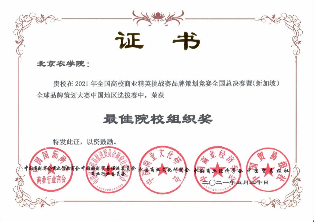 北京农学院经管学院以卓越的成绩收获《最佳组织奖》。