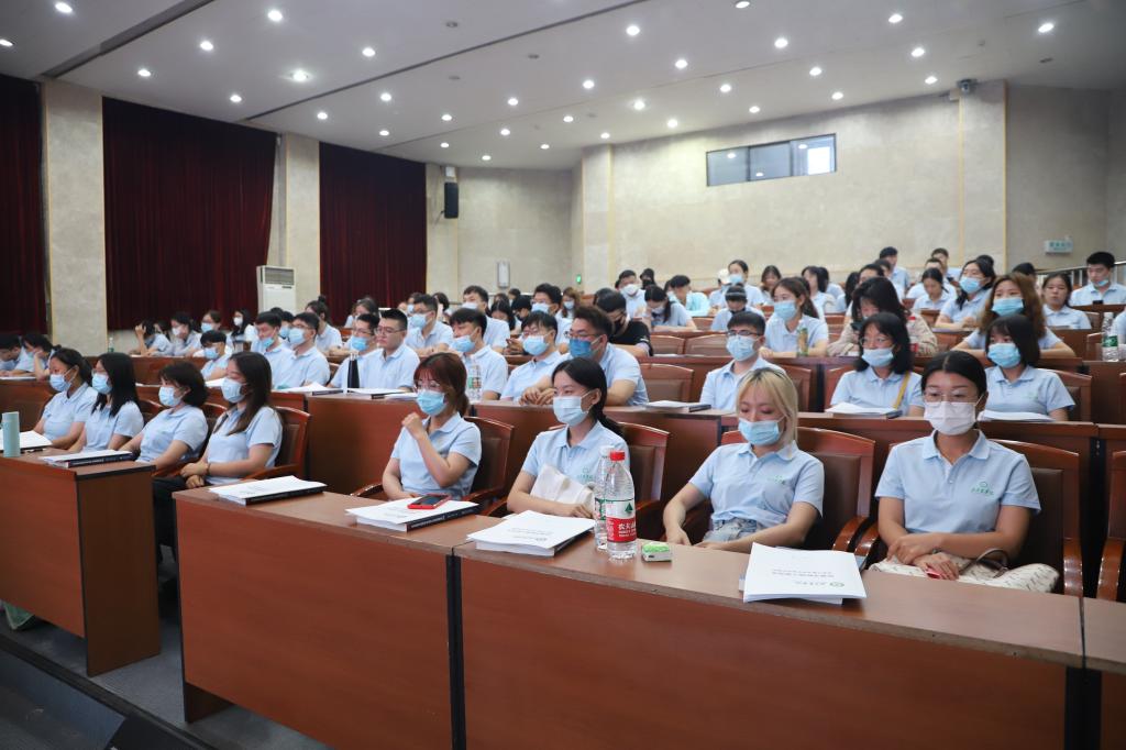 党总支书记胡宝贵教授致辞,他首先表达了对全体研究生新生的欢迎和祝贺,并对同学们的学习、生活提出“慎始、精进、善终”的要求,希望同学们沉心静气规划未来,时常自省日益精进,胡教授提醒同学们:“善终”是“慎始、精进”的自然结果,切忌心浮气躁,要“沉下来做研究”。今年是建党100周年,我们师生站在百年光辉、十四五开局交相辉映之际,要乘势而上、顺势而为,要珍惜时光、有所作为,不辜负总书记对青年学子的热切期望。