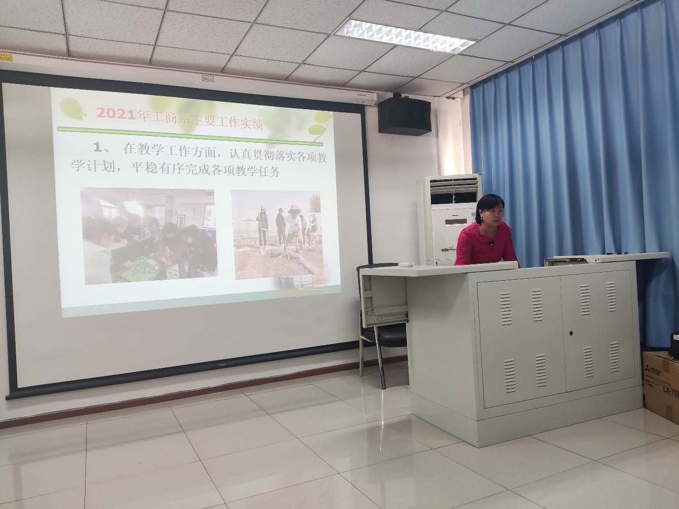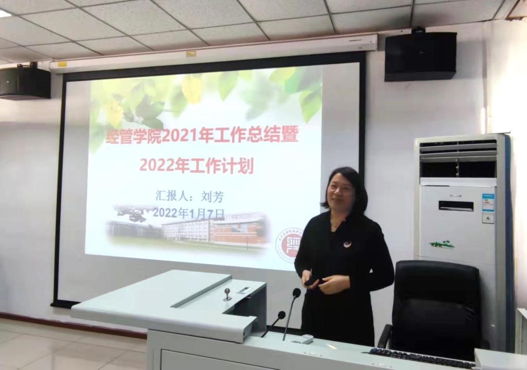 会上经管学院系主任赵海燕、何伟、桂琳、张宁,分别对本系2021年工作进行了总结,并提出了2022年发展计划。
