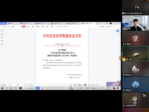 班会上,各班同学在班主任老师的带领下深入学习了习近平总书记关于教育和青年工作的重要论述、《中共北京农学院委员会关于加强学风建设的工作方案》、学风建设学习材料汇编,并对照文件要求找差距补短板。同学们畅所欲言,进行了广泛深入的“学风建设”专题讨论,共商学风建设思路与举措。