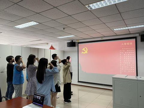 在学生党员代表雷新瑞的带领下,全体与会党员重温入党誓词,共同进行战时宣誓。大家举起右拳郑重宣誓,铿锵誓言响彻整个会议室。同学们以掷地有声的誓言表达了初心如磐、知重负重的决心和请党放心,抗“疫”有我的担当。