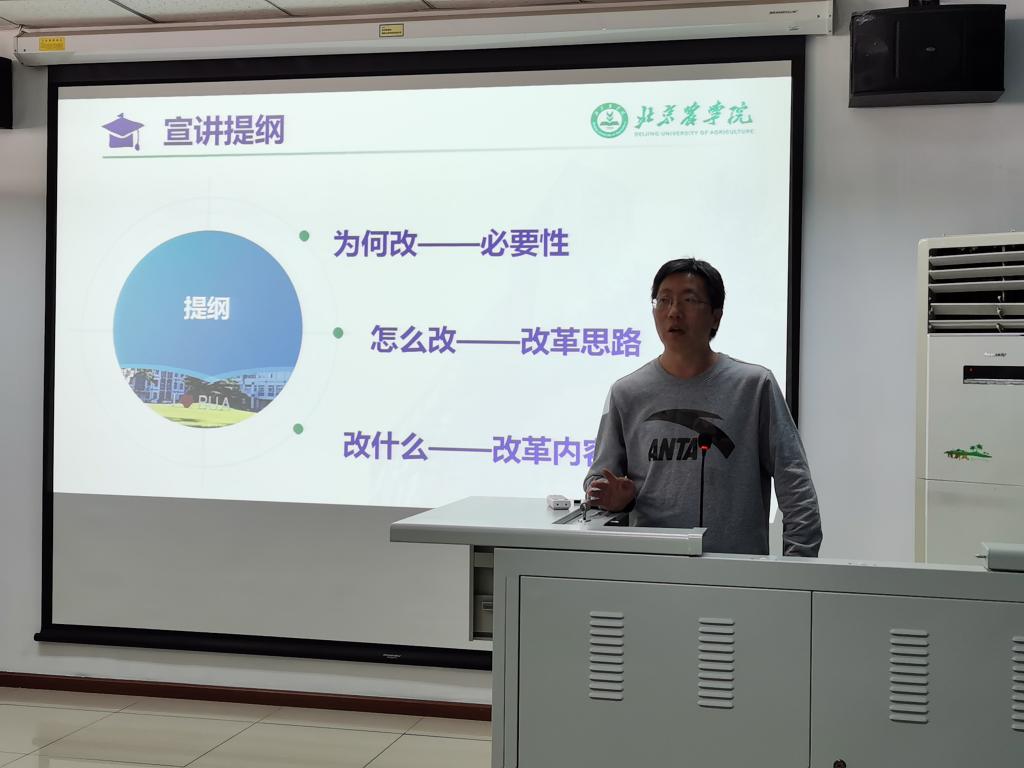 2022年10月12日中午,威廉希尔中文在经管楼401会议室召开人事政策宣讲会,邀请党委教师工作部部长、人事处处长刘铁军为全体教职工进行人事政策解读。会议由威廉希尔中文院长刘芳主持,全体教职工参加了会议。