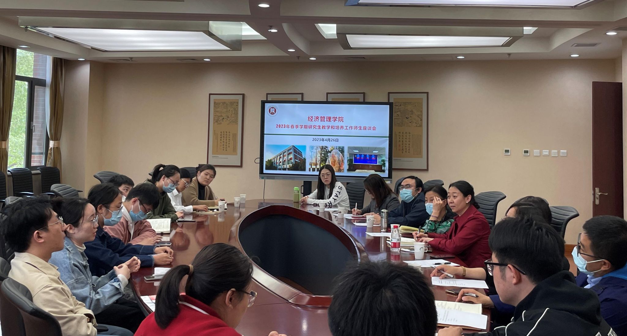 为深入了解我院研究生教学和培养工作进展情况以及学生遇到的问题,4月26日中午,经济管学院2023年春季学期研究生教学和培养工作师生座谈会在图书馆302会议室召开。会议由学生工作副院长张晓凤主持,研究生督导隋文香老师,导师代表黄雷、李萍和刘亚钊老师,研究生秘书和辅导员,研究生各班班长、团支书、学生代表参加了座谈会。