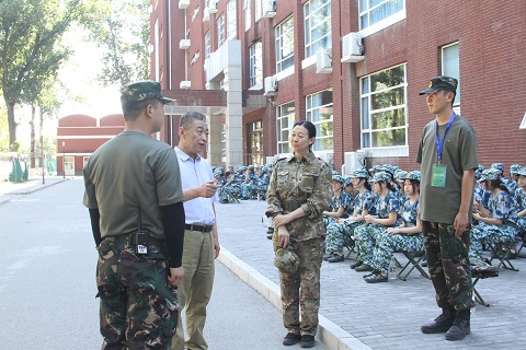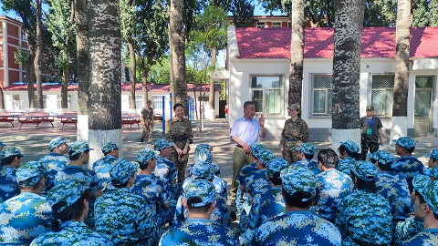 王万山代表学院班子对承训教官表示衷心感谢并与承训教官进行亲切交流。同时对学院带训指导员表达了关心和问候,叮嘱学院带训指导员要加强思想政治教育工作,教育引领学生争做有理想、敢担当、能吃苦、肯奋斗的新时代好青年。