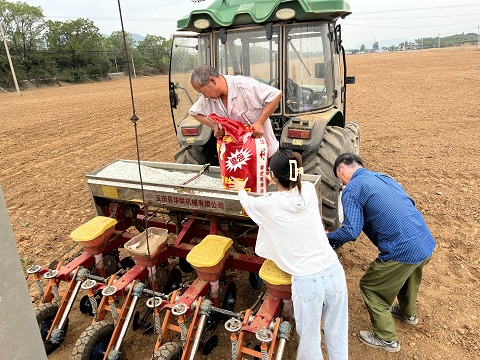 实践团师生一行走进巨各庄镇霍各庄村巨海阔种植专业合作社,深入调查复垦土地土壤改良效果,针对在前期调研过程中测定的地质情况,实践团为巨海阔种植专业合作社科技小院引进了自主研发的土壤改良基质专利技术,目前通过该技术进行土壤复耕和改良计划种植的玉米已经出苗,长势良好。在复垦田地里,刘笑冰老师对低质林地的还耕改造与提升工作做了介绍和指导,石生伟老师结合地形地貌和土壤质量,向实践团成员们介绍了耕地保护与粮食安全的重要性。